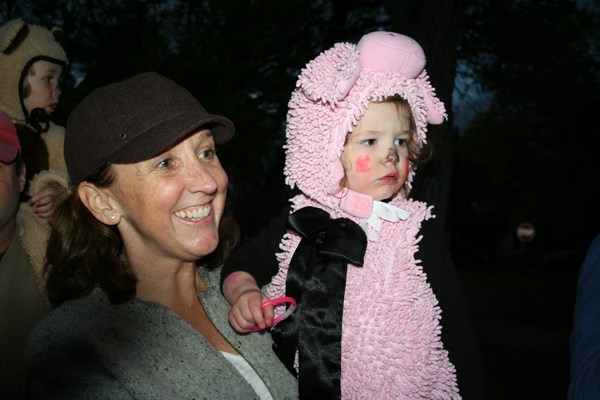 Running into the O'Connor family on the street.   A horse, Superman, SpiderGirl, and Skunk.  Oh so cute!